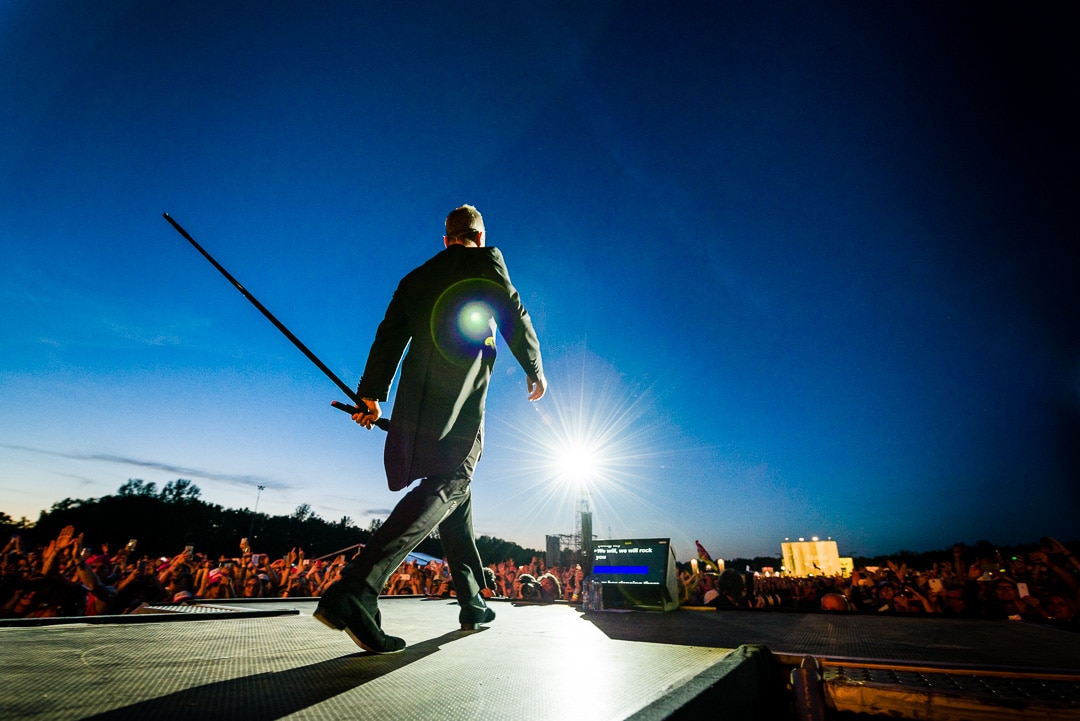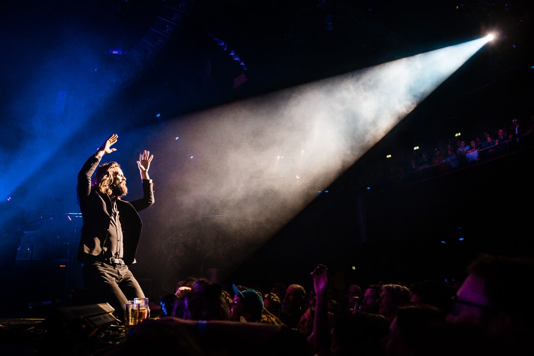 Ik let op het patroon van de lichtshow en op wat er nog meer gebeurt rondom het podium, anticipeer op de bewegingen van de artiest, zie de expressie op de gezichten en de interactie met het publiek. Aan de hand daarvan bepaal ik mijn plek en compositie en dan, twee maten later, als het licht een kwart seconde aangaat … schiet ik de foto die even daarvoor in mijn hoofd ontstaan is.